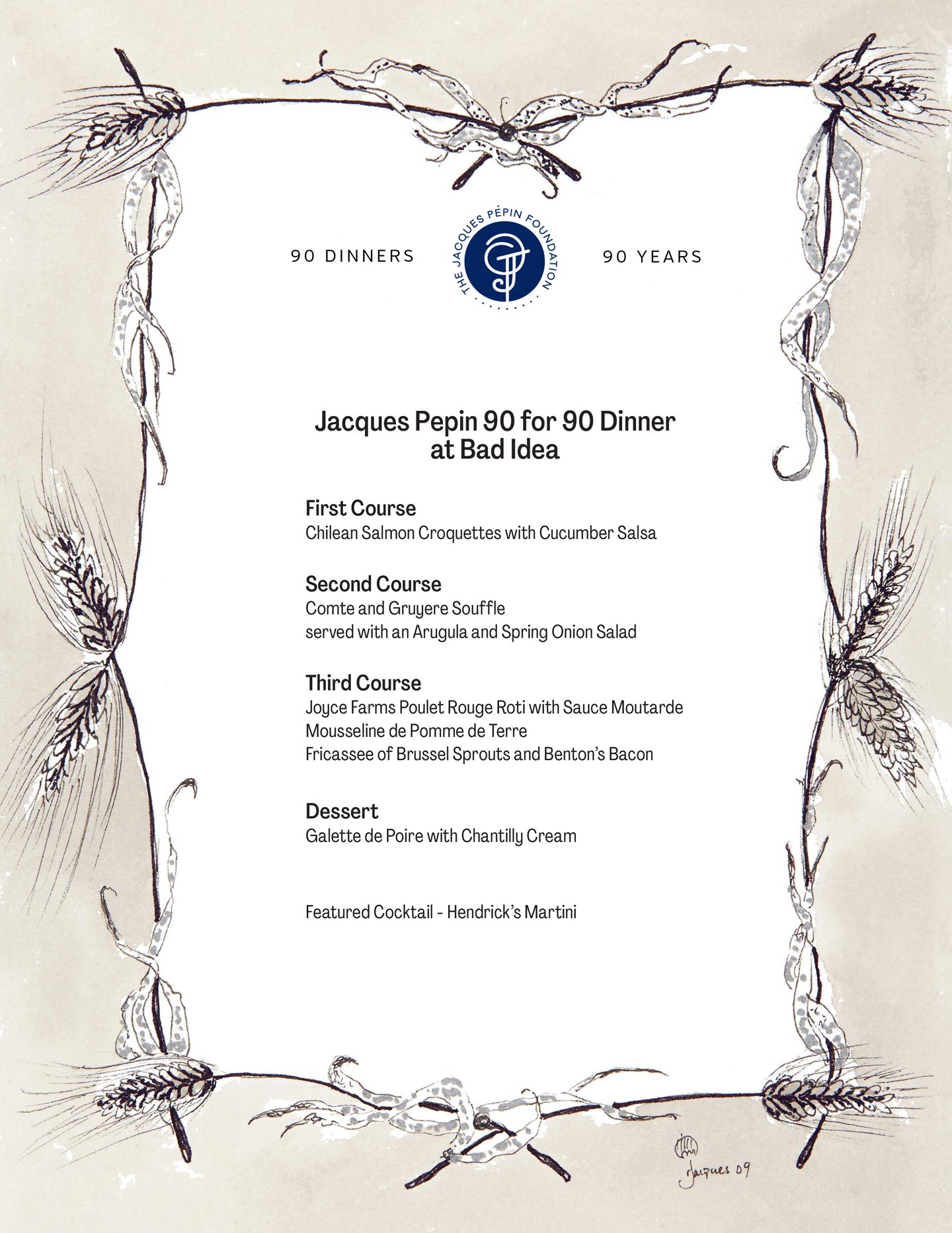 Join Chef Colby Rasavong for a four-course dinner on the balcony of Bad Idea where guests will enjoy a curated selection of Colby’s takes on recipes and techniques inspired by Chef Jacques Pépin’s iconic books and videos.