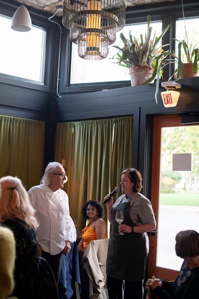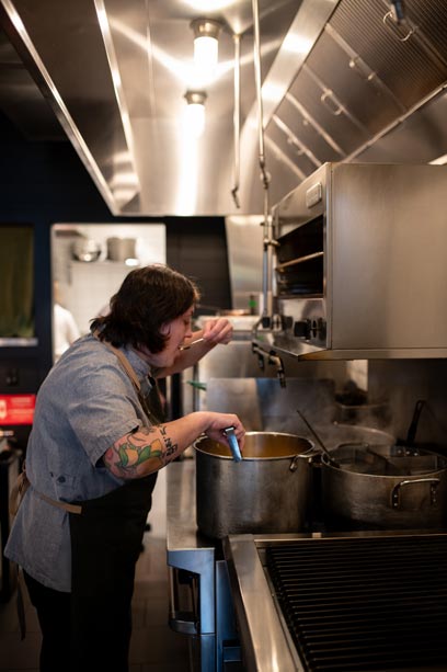 In 2019, Chef Galbraith opened Houndstooth, a New American restaurant nestled in the arts district of Benton Harbor, MI. As co-founder and now sole owner and executive chef, she envisioned a space where adventurous flavors meet community connection. With an open-concept kitchen and bar, Houndstooth immerses guests in the lively energy of the culinary process, offering a dynamic and seasonal menu that evolves with her team’s inspiration and the bounty of each season.