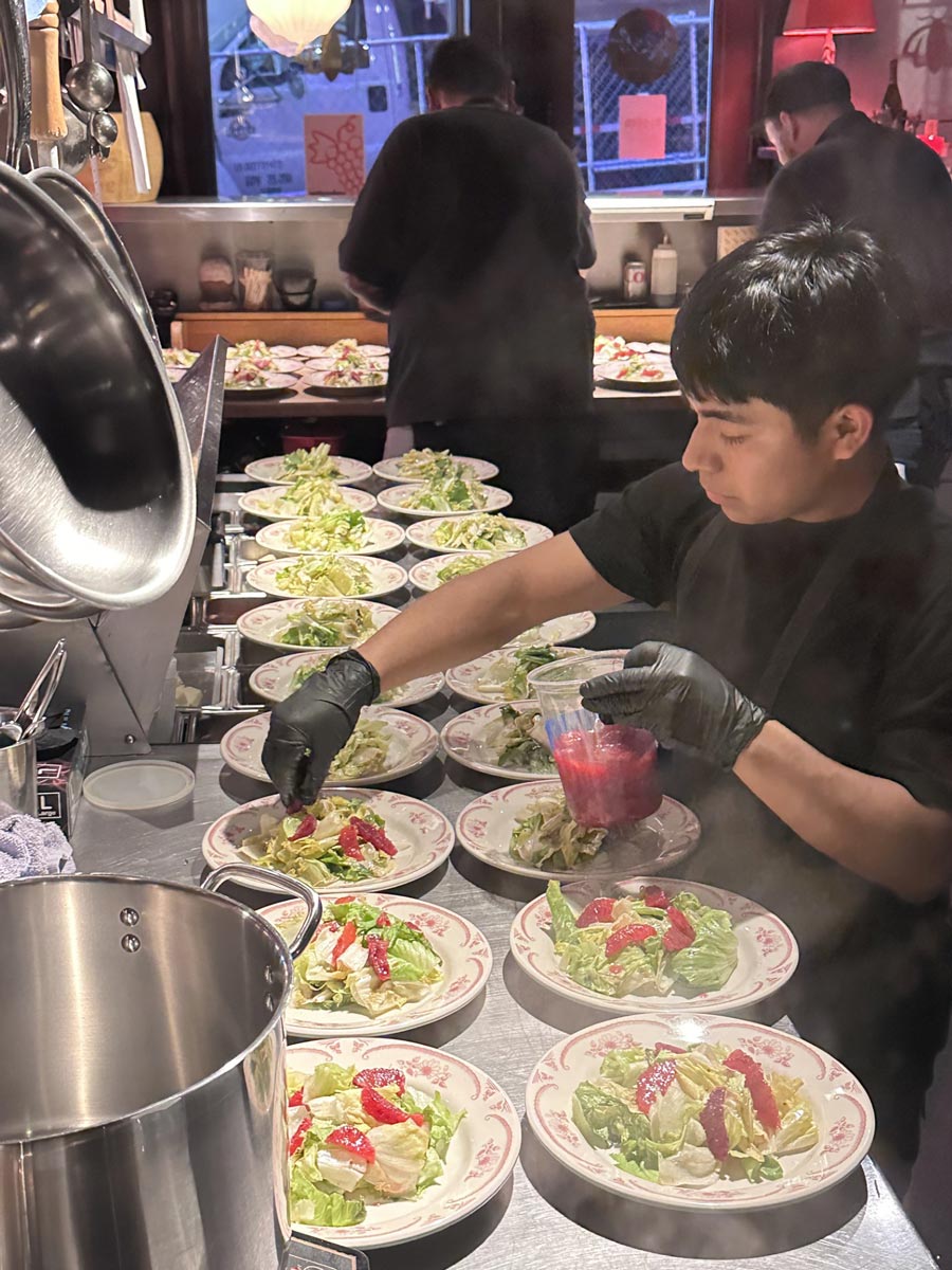 - Communal family style dining.