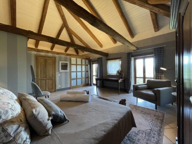 Enter a world unto itself at Villa San Lorenzo, a stunningly restored 17th-century stone villa with luxurious accommodations nestled on 14 acres in the Alta Langa hills of Piedmont, Italy, with views of rolling mountains and the Italian Alps from your deck, swimming pool, and al fresco dining area.